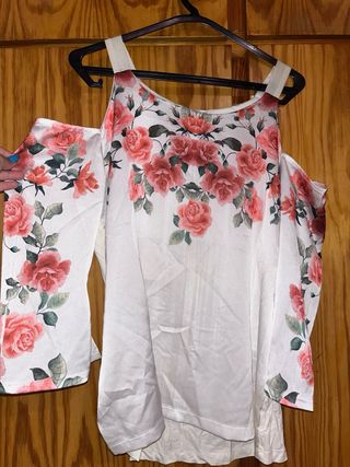 Blusa branca com flores rosa. Tamanho P no Brasil (equivalente a 36). Nova com etiqueta.