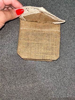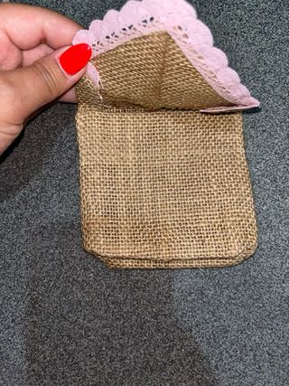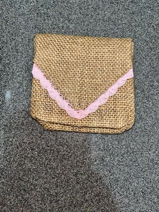 Bolsa pequena de serrapilheira, com renda branca. Nunca foi usada. Ideal para prendas pequenas.