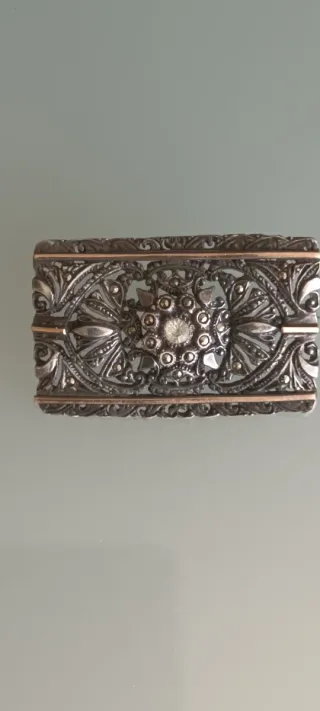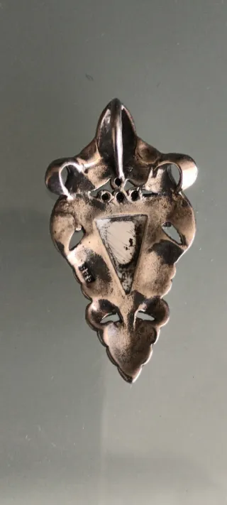 Lindo alfinete com um belíssimo trabalho de prata e cristais. Completamente novo e muito original. Grande e vistoso, embora elegante e requintado. Não consigo encontrar marcas mas foi testado em duas ourivesarias diferentes. Mede 5cm. de comprimento por 4cm. de largura, e pesa 28g.