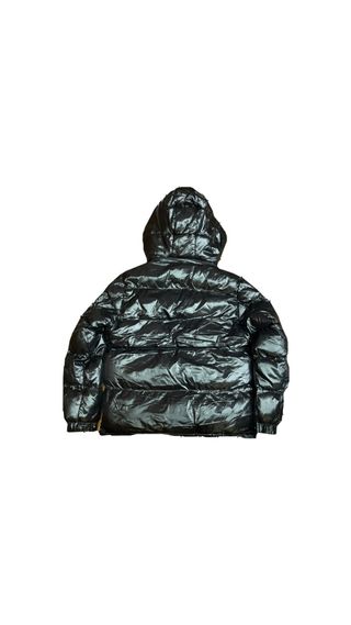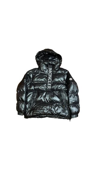 Casaco puffer Moncler com acabamento brilhante e capuz. - Design acolchoado. - Fecho frontal parcial com logo. - Bolsos laterais com fecho. - Detalhe de logo na manga.