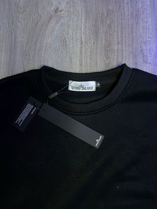 Casaco Stone Island em preto. - Gola redonda. - Manga comprida. - Detalhe de logo na manga.