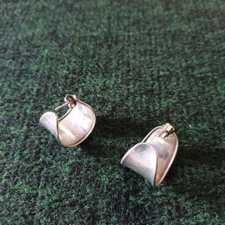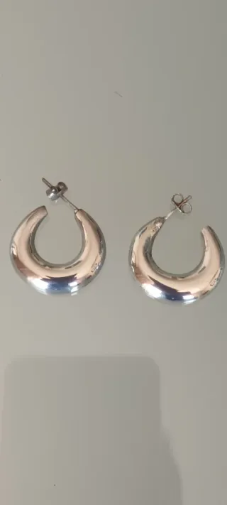 Par de brincos em prata com um design moderno e elegante. - Material: Prata - Design: Curvo e polido