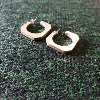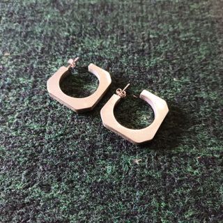 Par de brincos em formato hexagonal, com um design moderno e elegante. - Material: Prata - Cor: Prateada - Formato: Hexagonal
