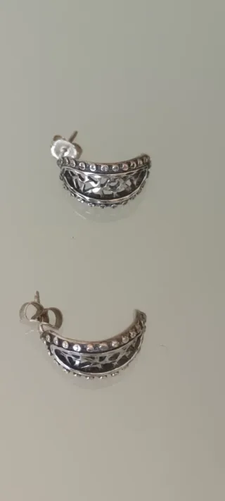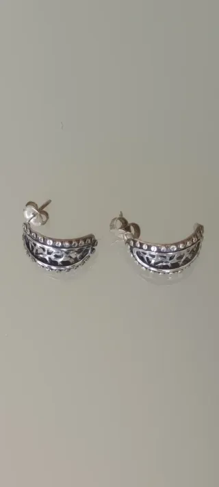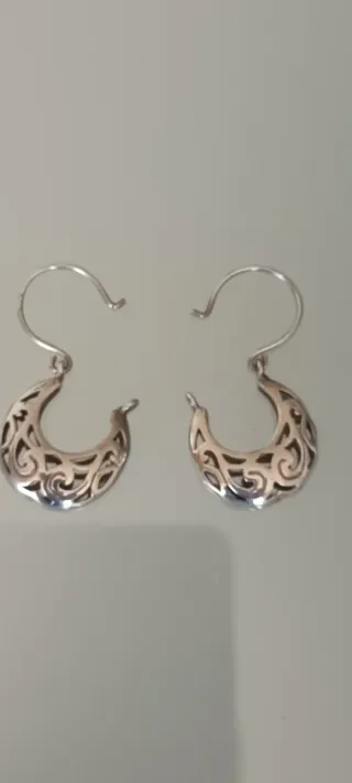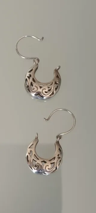 Par de brincos em prata com um design intrincado. São leves e elegantes. 3,5cm. de comprimento.