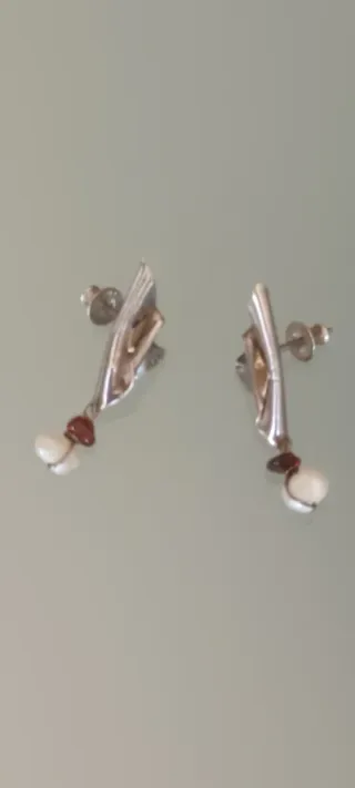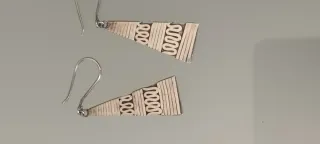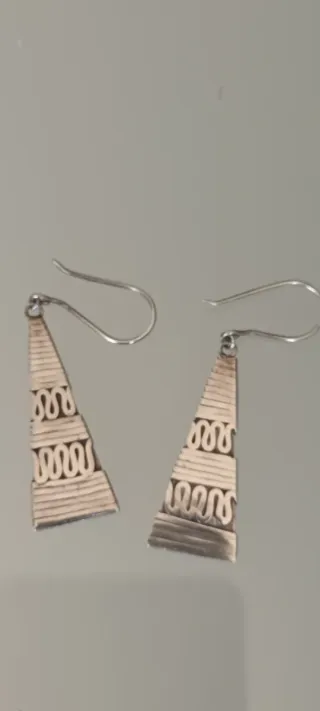 Par de brincos em prata com um design único. 3,8cm. de comprimento. - Design geométrico inspirado em padrões tradicionais. - Fecho seguro para uso diário. - Material: Prata.