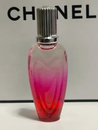 Fragrância feminina em frasco de vidro com gradiente de cor. 4ml. - Design elegante e delicado. - Tampa prateada com ranhuras.