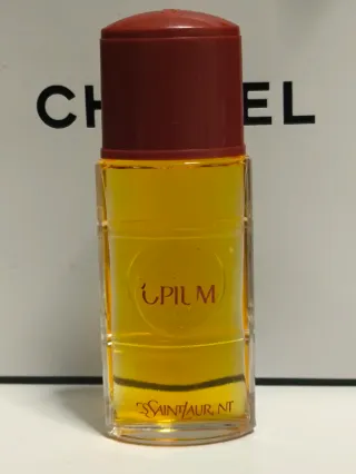 Colônia Opium da Yves Saint Laurent em frasco de vidro transparente com líquido amarelo. 7.5ml. - Frasco com tampa em tom de castanho. - Detalhe do nome Opium em relevo no centro do frasco. - Nome Yves Saint Laurent gravado na base do frasco.