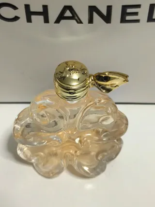 Fragrância delicada em frasco com design de flor. 5ml. - Frasco em vidro transparente com detalhes em relevo. - Tampa dourada com fecho. - Aroma floral.