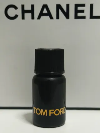 Frasco de colônia da marca Tom Ford. 5ml. - Frasco na cor preta com detalhes dourados.