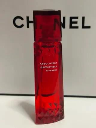 Fragrância feminina Givenchy Absolutely Irresistible. Miniatura - Frasco de vidro vermelho. - Design elegante e moderno.
