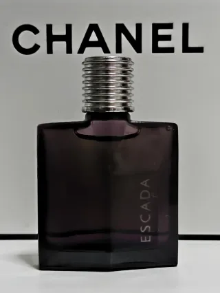Fragrância Escada em frasco de vidro. Miniatura - Frasco com detalhes em prata. - Líquido de cor roxa.