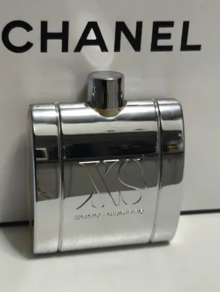 Fragrância masculina Paco Rabanne XS. Miniatura 7 pecados mortais - Frasco em metal prateado. - Design moderno e elegante.