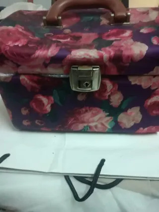 Mala de viagem com um padrão floral vibrante. - Design com flores em tons de rosa e roxo. - Fecho metálico para segurança.