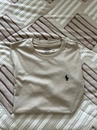 T-shirt Polo Ralph Lauren em tom bege. Possui o icónico cavalo bordado no peito. - Gola redonda. - Manga curta. - Tecido macio e confortável.