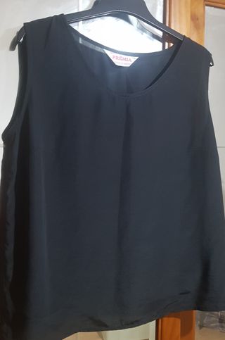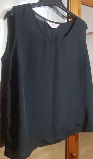Top preto em cetim de senhora.