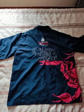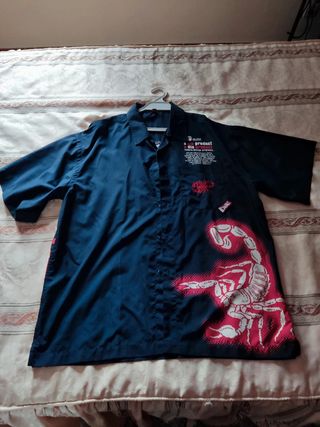 Camisa Dia promis a la victoire preta tema escorpião em muito bom estado.