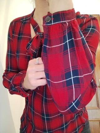 Blusa da Cortefiel, com fitas para laço junto no decote. Aperta nos punhos com botão elegante.
