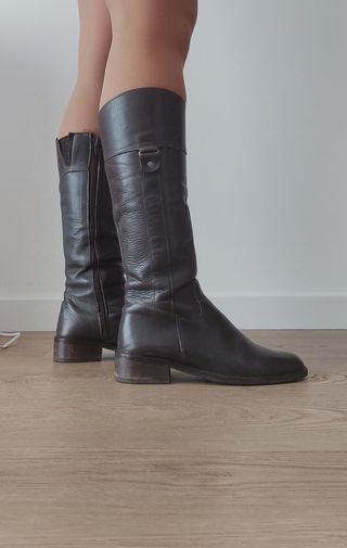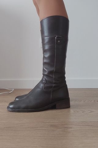 Botas cano médio/alto, castanhas. Todas em couro. Sola como nova. Com elástico lateral para se ajustar à perna. N. 36. Preço de compra: 89euros