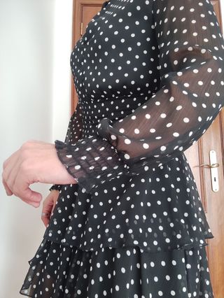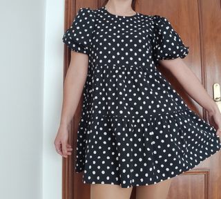 Vestido curto, as bolinhas preto e branco. Lefties.