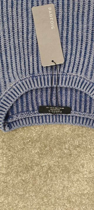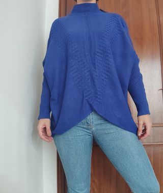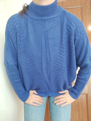 Camisola de malha azulão. Malha quentinhas e muito macia. Muiiiiito confortável. Mangas largas dos braços é mais justa nos antebraços. Sem nenhum fio puxado ou marca de uso. Tamanho L/XL mas veste do S ao XL.