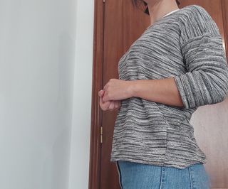 Camisola de malha, manga de 3/4 Decote a meio barco. Como nova