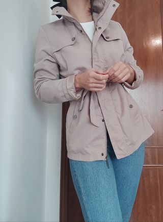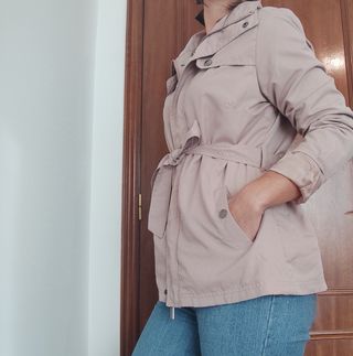 Parka bege, como nova. Sem nenhum sinal de utilização. Elegante. Com cinto, fecho zíper e molas. Forro novo. tamanho L. Mas veste do S ao L.