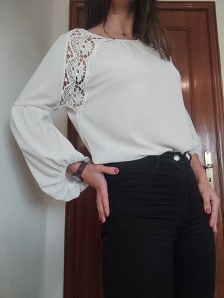 Blusa Cortefiel em bom estado. Mangas abalonadas. Muito elegante. Cor branco sujo.