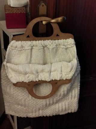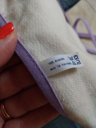 Mala de ombro em tecido, azul. Alça com efeito entrançado. 2 bolsos laterais. Interior muito espaçoso. Cabe à vontade 3 cadernos/livros A5, telemóvel e carteira. Nunca usada. Medidas aproximadas: 35x30 cm