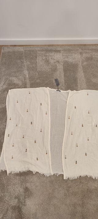 Quimono da Parfois, novo. Cor de creme com pormenores dourados. Abertura lateral. Fluido e largo. Tamanho único. Altura da peça - 80cm.