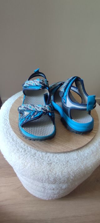 Sandálias de trekking da marca Quechua, num azul e cinzento. Estão em ótimo estado, com pouco uso - Modelo confortável e leve. - Perfeitas para caminhadas e atividades ao ar livre. - N.37/24 cm