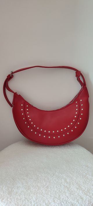 - Formato meia-lua, estilo moderno e elegante. - Fecho de zíper. - Detalhes em metal prateado. - Alça com tamanho ajustável. - forrada e com bolso interior.
