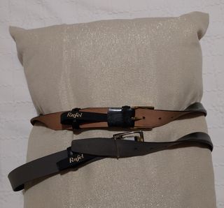 Dois cintos de pele, ambos na cor preta. Fivela dourada. Ambos em excelente estado. - Feitos de pele genuína. - Fivelas elegantes e resistentes. - Perfeitos para uso diário.