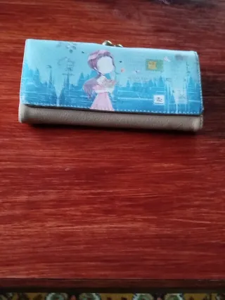 Porta-moedas com uma linda estampa. - Estampa de menina com cidade ao fundo. - Detalhes em tons de azul e bege.