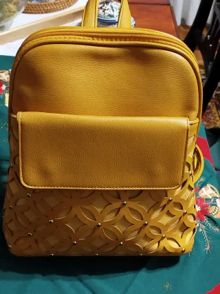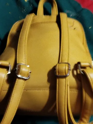 Mochila de cor amarela, com alças ajustáveis e fechos metálicos. - Material sintético. - Alças acolchoadas para maior conforto. - Design moderno e prático.