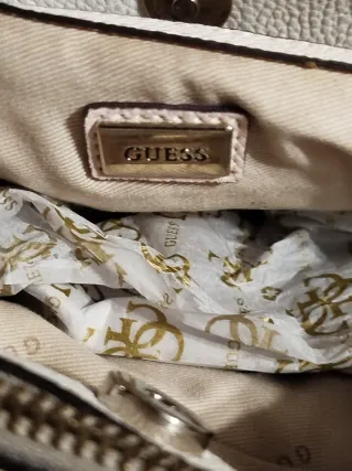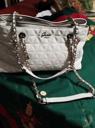 Mala elegante com um design acolchoado. - Detalhe de corrente - Logótipo Guess 1981 - Pormenor de triângulo Guess