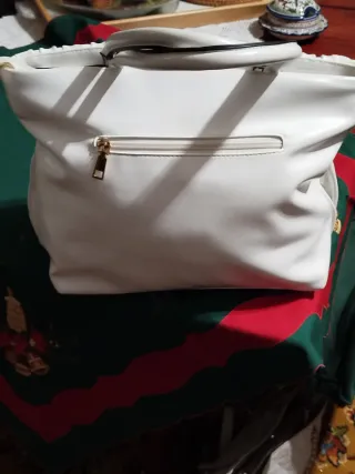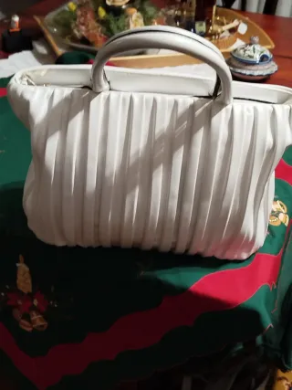 Mala elegante com um design plissado. - Cor branca - Alça superior - Fecho de correr