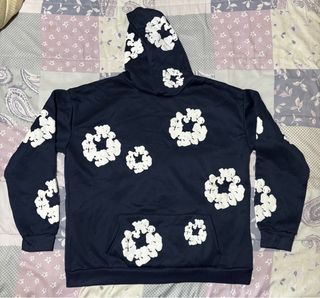 Moletom com estampa floral em branco. - Mangas compridas. - Capuz. - Bolso frontal.