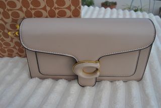 Mala de senhora estilo tiracolo, com padrão geométrico e acabamentos em prateado. O artigo está novo e sem uso, em excelente estado de conservação. Estado: Novo (sem etiquetas). Cor: Creme/Bege com padrão em castanho. Alça: Corrente metálica prateada com proteção de ombro para maior conforto. Interior: Forrado, com compartimento para organização. Nota importante: Devido à ausência de certificados ou etiquetas de marca, o artigo é vendido conforme as fotos e a um preço mais acessível.