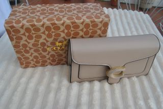 a de senhora estilo tiracolo, com padrão geométrico e acabamentos em prateado. O artigo está novo e sem uso, em excelente estado de conservação. Estado: Novo (sem etiquetas). Cor: Creme/Bege com padrão em castanho. Alça: Corrente metálica prateada com proteção de ombro para maior conforto. Interior: Forrado, com compartimento para organização. Nota importante: Devido à ausência de certificados ou etiquetas de marca, o artigo é vendido conforme as fotos e a um preço mais acessível.