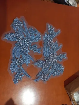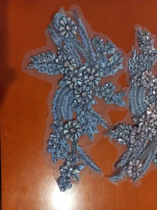 Lindo bordado com detalhes em strass, perfeito para dar um toque especial em roupas ou acessórios. - Design floral. - Acabamento delicado.