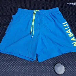 Calções de natação da marca Nabaiji, em azul. - Cordão de ajuste na cintura. - Logótipo da marca na lateral.