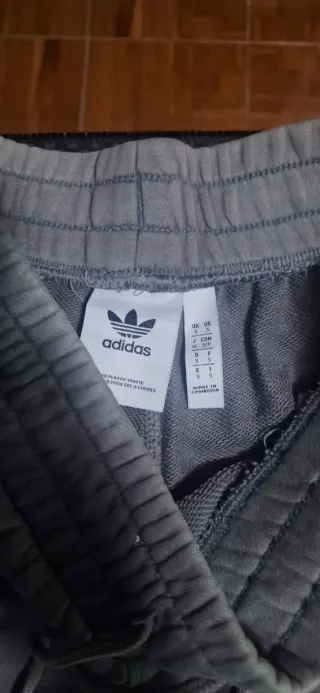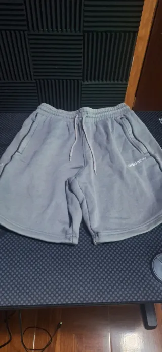 Calções desportivos da Adidas em cinza. - Cintura com cordão ajustável. - Bolsos laterais. - Logótipo da Adidas na perna.