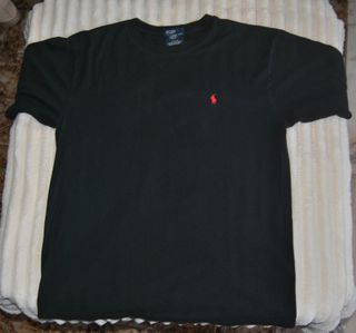 PORTUGUÊS T-shirt original Polo by Ralph Lauren em cor preta com logótipo clássico bordado a vermelho. Tamanho: XL nas etiquetas (Equivale a um tamanho de rapaz/jovem 18-20 anos, ou um S/M pequeno de adulto - ver medidas). Material: 100% Algodão. Estado: Em bom estado vintage. A cor apresenta o desvanecimento natural do uso, o que lhe dá um estilo retro muito apreciado. Sem furos ou manchas. ESPAÑOL Camiseta original Polo by Ralph Lauren en color negro con logotipo clásico bordado en rojo. Talla: XL en etiqueta (Equivale a talla de niño/joven 18-20 años, o una S/M pequeña de adulto - ver medidas). Material: 100% Algodón.