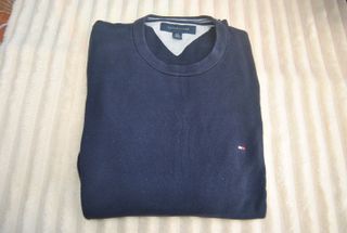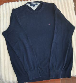 Estado: Usado - Em bom estado Marca: Tommy Hilfiger Tamanho: L (Large / Grande) Cor: Azul Marinho (Navy) Vendo camisola de malha fina da Tommy Hilfiger, original e em bom estado de conservação. É uma peça clássica e versátil, ideal para um look casual ou mais formal (por cima de uma camisa). Detalhes do produto: Logótipo da marca bordado no peito. Detalhe em contraste de cor (cinza) no interior da gola. Acabamentos em malha elástica nos punhos e na cintura para um melhor ajuste. Tecido confortável e de excelente qualidade, típico da marca.