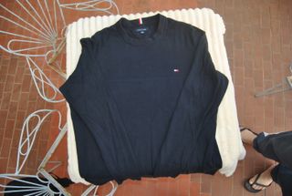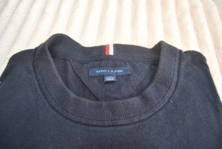 Muito bom / Usado Marca: Tommy Hilfiger Tamanho: XXL (TTG/XXG) Cor: Preto Detalhes do Artigo: Camisola de malha fina original da Tommy Hilfiger. Design clássico com gola redonda (crew neck). Logótipo da bandeira bordado discretamente no peito. Acabamento interior da gola com as cores icónicas da marca (azul, branco e vermelho). Material leve e confortável, ideal para meia estação ou para usar sobre uma camisa. Corte: Regular Fit / Confortável. Condição: A peça encontra-se em ótimo estado de conservação, sem manchas, fios puxados ou descoloração evidente. Etiqueta interna intacta confirmando a autenticidade e o tamanho.
