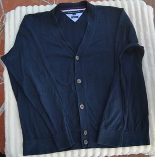 Marca: Tommy Hilfiger (Original) Estado: Em bom estado / Pouco usado Cor: Azul Marinho Clássico Tamanho: XL (TG/XG) Material: 100% Algodão Pima (Pima Cotton) Vendo cardigã clássico da Tommy Hilfiger em tom azul marinho. É uma peça de alta gama, fabricada em Algodão Pima, conhecido por ser um dos melhores algodões do mundo: é incrivelmente suave ao toque, mais resistente e não ganha "bolinhas" facilmente. Detalhes: Corte clássico com decote em V. Fecho frontal com 5 botões originais. Punhos e bainha canelados para um melhor ajuste. Logótipo da marca no interior da gola.