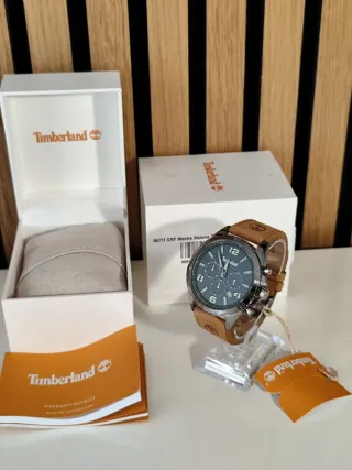 Relógio Timberland com bracelete em couro e mostrador azul. Inclui caixa original e manual de instruções. - Bracelete em couro castanho. - Fecho com fivela fuzilao . - Mostrador azul e prateado com vidro mineral - Caixa original incluída. - Manual de instruções PE902. - Impermeabilidade 5ATM/50m Funções: - Cronógrafo - Contador dos segundos em pequeno - Indicador de data Cor: castanho, azul e cinzento Diâmetro : 45mm 📦 Envios rápidos 📦 Envios cuidadosos