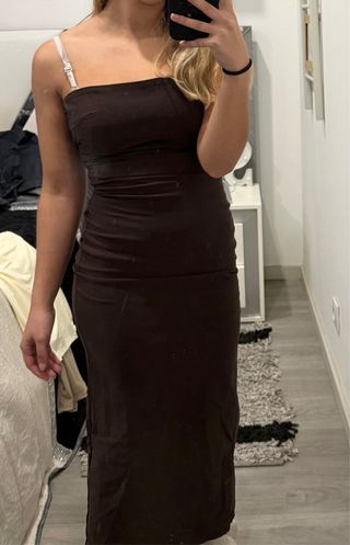 Vestido castanho comprido