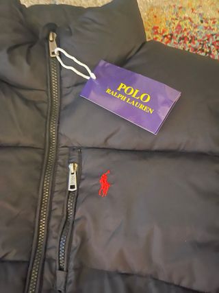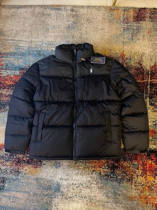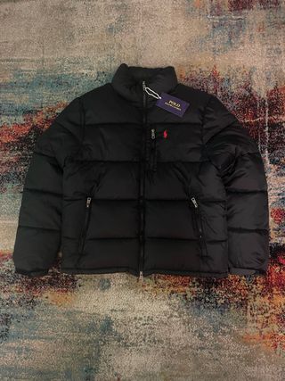 Casaco acolchoado Ralph Lauren em preto com o icónico logo branco. - Design puffer moderno. - Gola alta para proteção extra. - Fecho frontal completo.