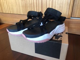 Sandálias Bimba y Lola com um design moderno e confortável. - Tiras ajustáveis em preto. - Sola com detalhes em rosa.
